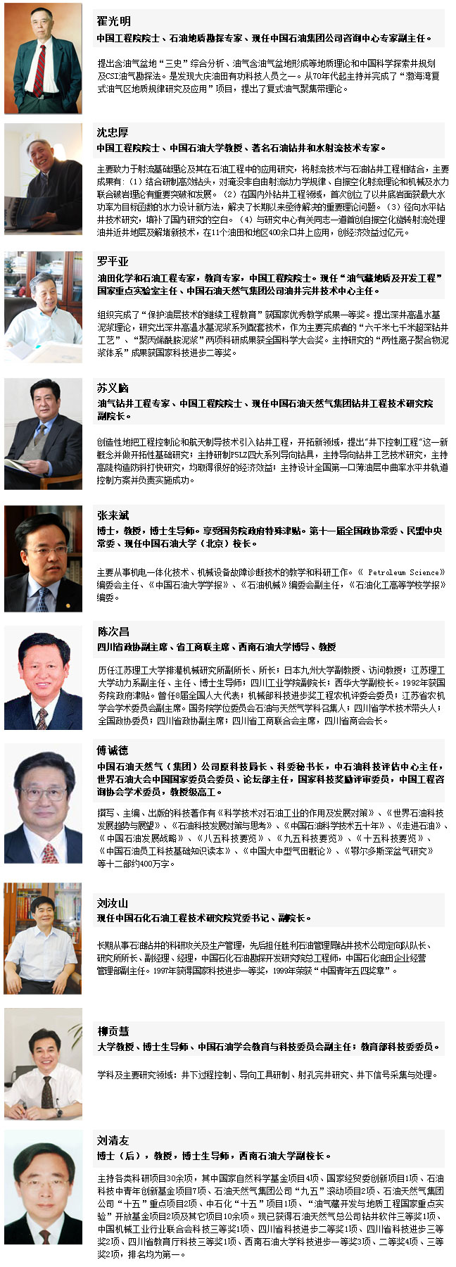 委員會(huì)委員由翟光明、沈忠厚、羅平亞、蘇義腦、張來斌、陳次昌、傅誠德、劉汝山、柳貢惠、劉清友共計(jì)十位兩院院士、業(yè)內(nèi)專家、知名學(xué)者、相關(guān)政府部門與企業(yè)負(fù)責(zé)人等構(gòu)成。
