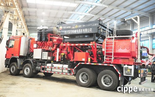 中石化四機廠歷時4年研制的3000型成套壓裂裝備包括3000型壓裂泵車、SHS20混砂車、SGH140管匯車、SYQ300儀表車,以及20立方米/分混配車、13000千克/分輸砂裝置等在內(nèi)的超高壓、大功率3000型成套壓裂裝備,具備整機功率大、機動性能好、集成化程度高等優(yōu)點,改變了傳統(tǒng)基地配液、井場儲液的供液模式,避免了現(xiàn)場殘液的浪費及環(huán)境污染,同時大量減少現(xiàn)場儲罐數(shù)量,降低作業(yè)占地面積,安全環(huán)保優(yōu)勢明顯。