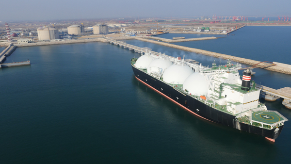 圖為正在開展接卸作業(yè)的青島LNG接收站。
