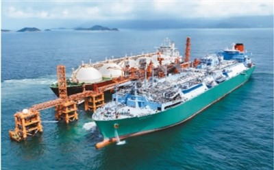 液化天然氣儲存容量達26.3萬立方米的浮式儲存再氣化裝置船“紫荊精神號”長期停泊在接收站,用于接收、儲存及將液化天然氣再氣化。
