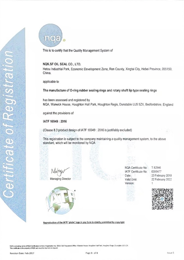 邢臺山峰特種橡膠制品有限公司成立于1990年,深耕密封行業(yè)30年,是一家專注于研發(fā)制造特種橡膠防滲漏油封和O型圈以及各類密封件產(chǎn)品的專業(yè)生產(chǎn)廠家。公司位于河北省邢臺市河頭工業(yè)區(qū),創(chuàng)立的自主品牌是“NQK.SF”。